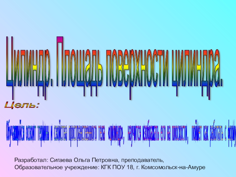 Разработал: Сигаева Ольга Петровна, преподаватель,