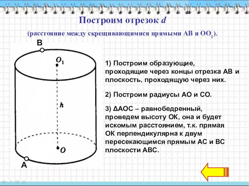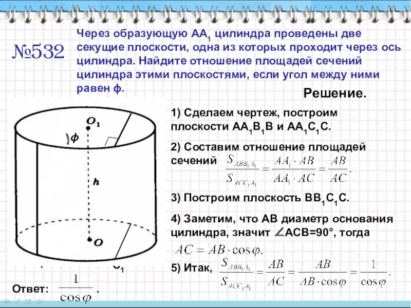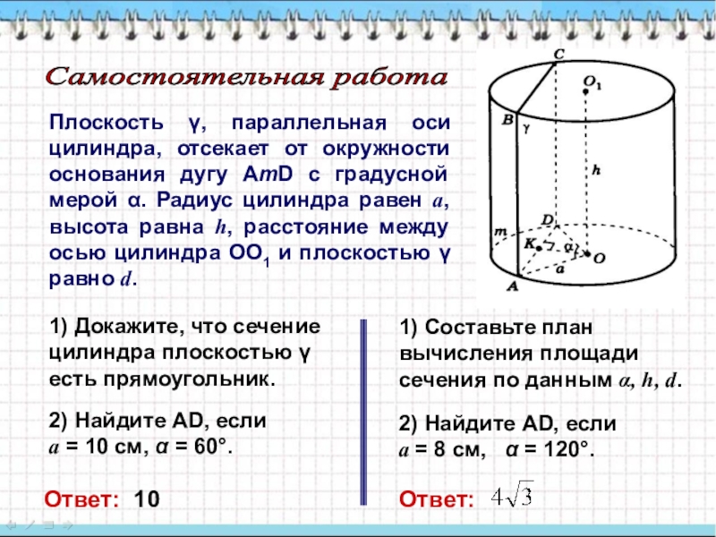 1) Докажите, что сечение цилиндра плоскостью γ есть прямоугольник.