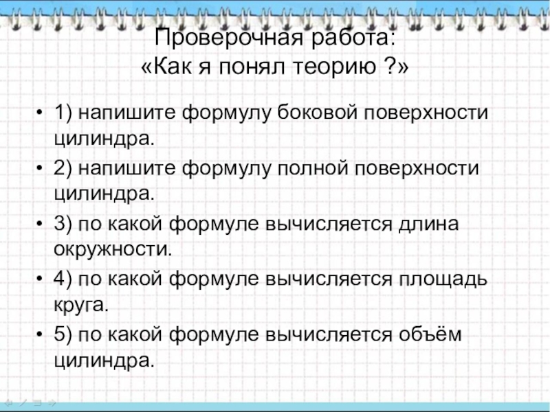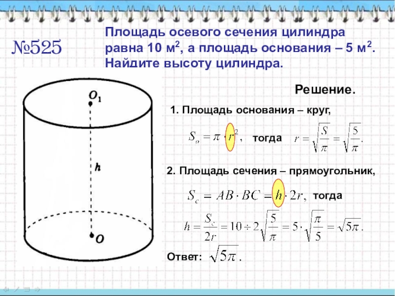 1. Площадь основания – круг,