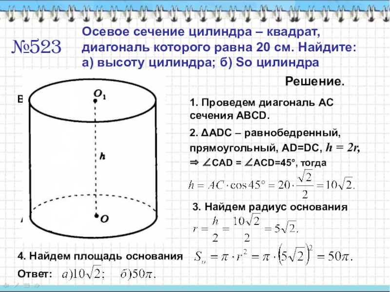 4) Заметим, что АВ диаметр основания цилиндра, значит ∠АСВ=90°, тогда