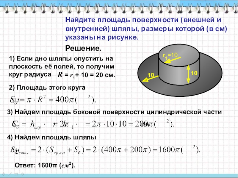 4) Найдем площадь шляпы