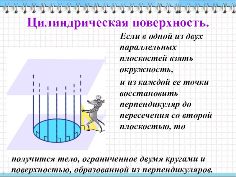 получится тело, ограниченное двумя кругами и поверхностью, образованной из перпендикуляров.