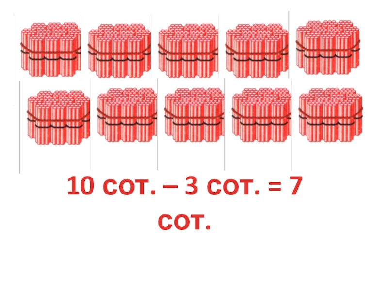 Слайд 1410 сот. – 3 сот. = 7 сот.