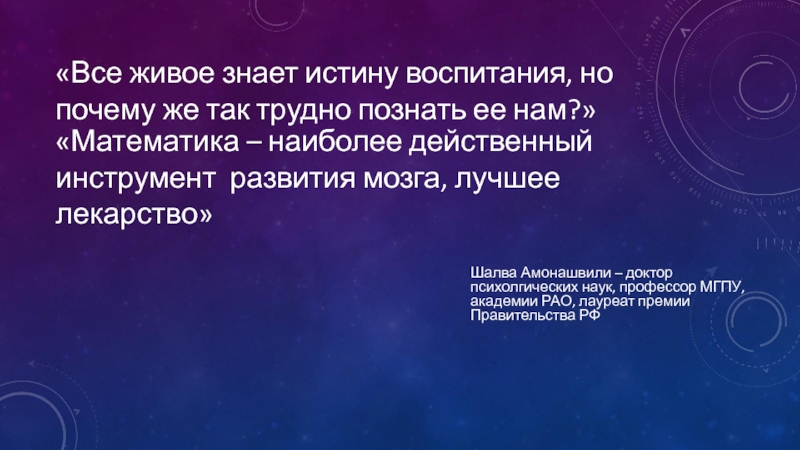 Шалва Амонашвили – доктор психолгических наук, профессор МГПУ, академии РАО, лауреат премии Правительства РФ