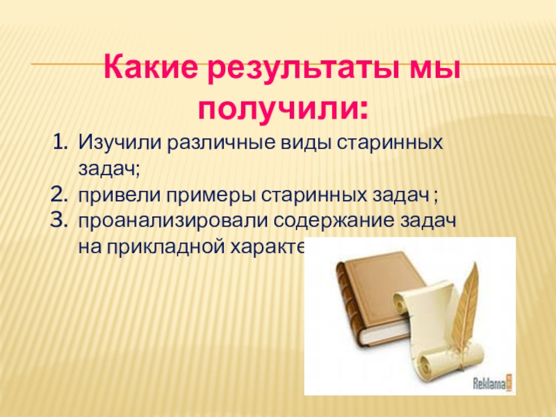 Слайд 3 Изучить различные виды старинных задач;