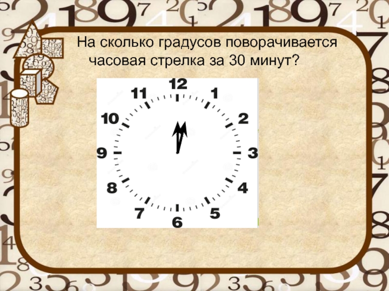 Слайд 10 На сколько градусов поворачивается часовая стрелка за 30