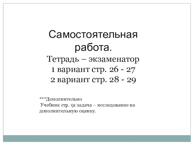 Учебник стр. 91 задача – исследование на дополнительную оценку.