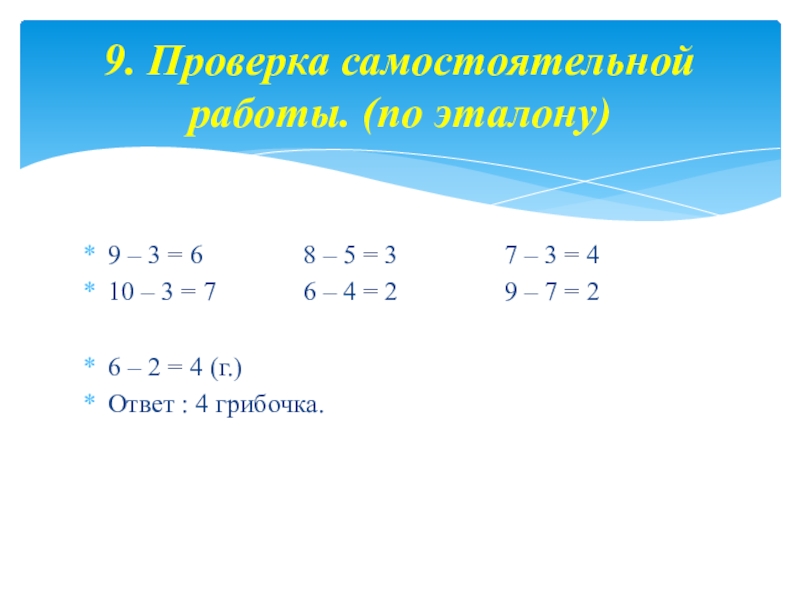 9. Проверка самостоятельной работы. (по эталону)