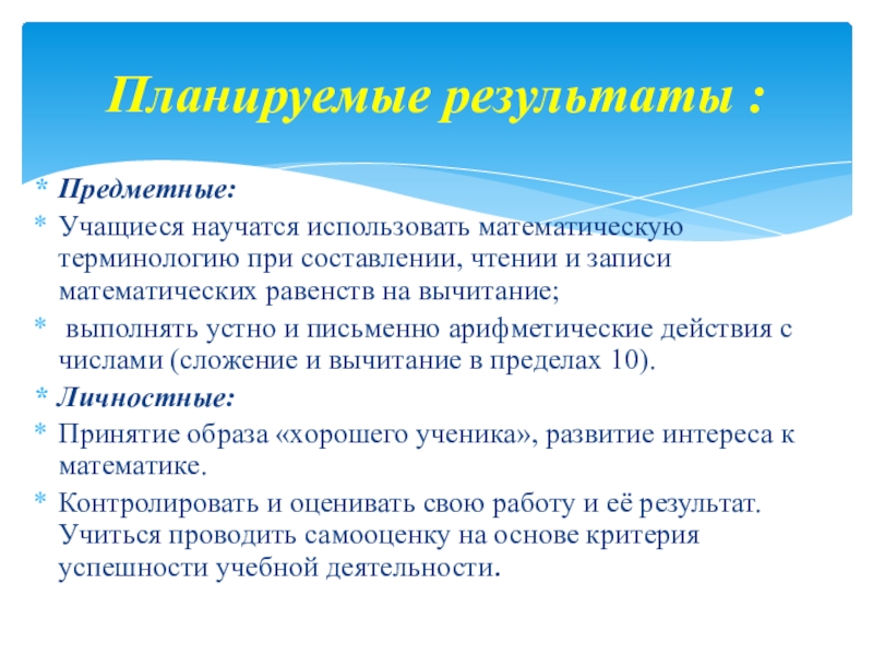 Планируемые результаты :