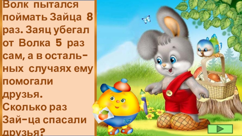Слайд 10Волк пытался поймать Зайца 8 раз. Заяц убегал от Волка 5