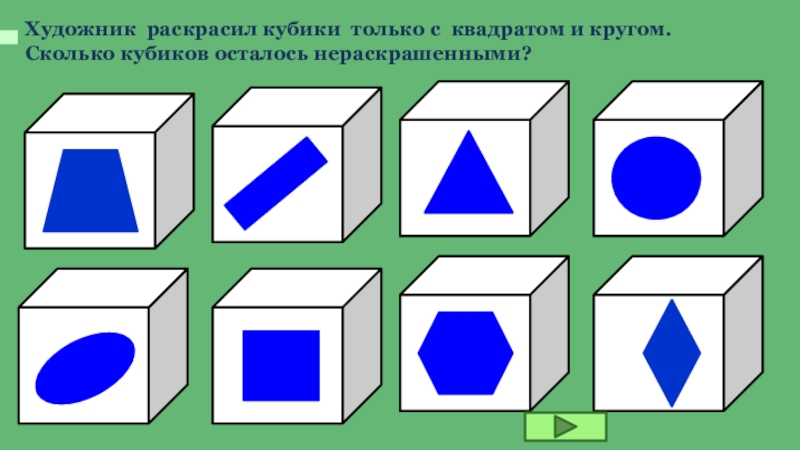 Художник раскрасил кубики только с квадратом и кругом.  Сколько кубиков осталось нераскрашенными?