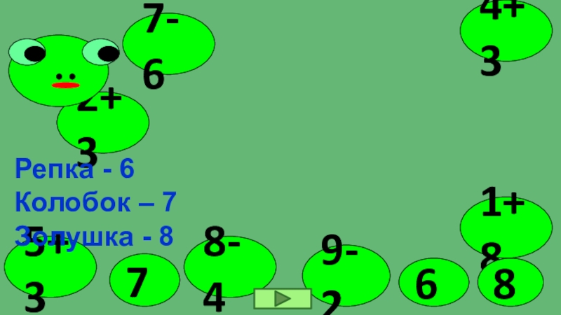 9-21+87-64+38-45+32+3678Репка - 6Колобок – 7Золушка - 8
