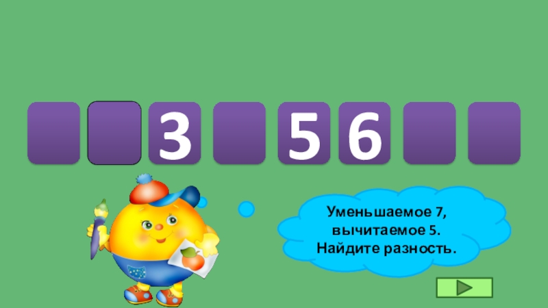 Уменьшаемое 7, вычитаемое 5. Найдите разность.