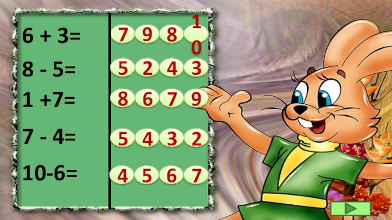 6 + 3=78108 - 5=10-6=1 +7=7 - 4=92543976824356457