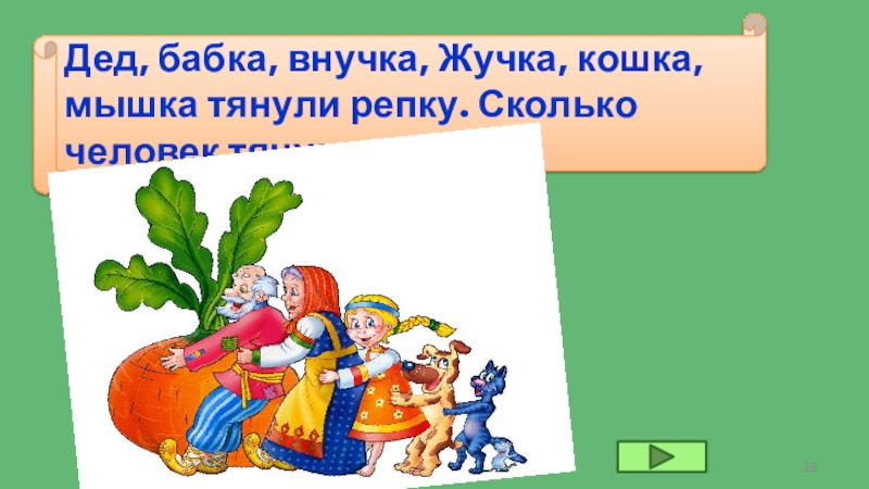 Слайд 26Дед, бабка, внучка, Жучка, кошка,