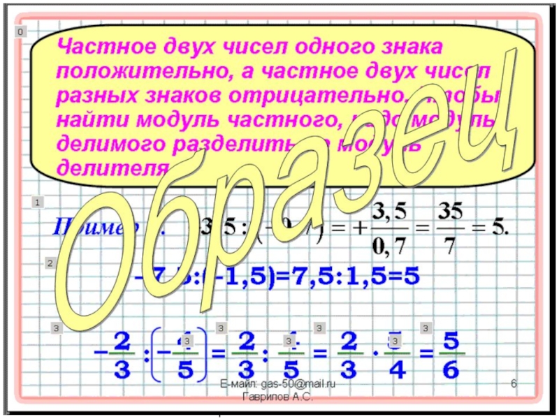 Презентация, доклад по математике на тему Умножение и деление рациональных чисел (6 класс) Урок 124.