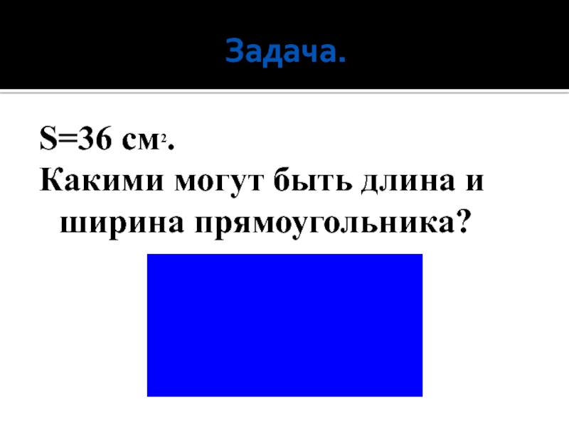 Задача.S=36 cм2.Какими могут быть длина и ширина прямоугольника?