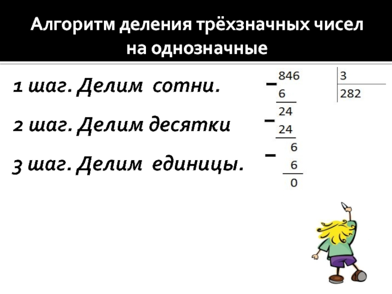 Слайд 6Алгоритм деления трёхзначных чисел на однозначные