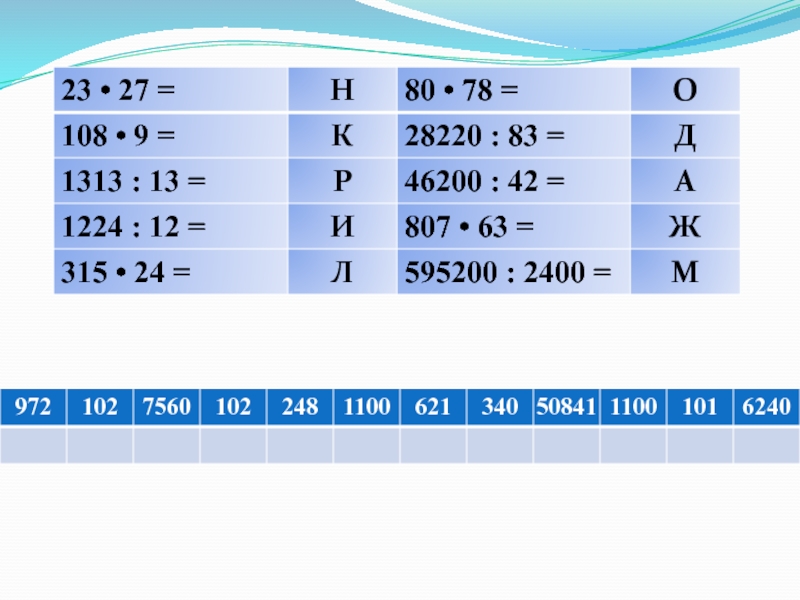 б) 4у – 29 = 31 б) 104у – 12 = 1132 б) 1836 : (26 – 4у) = 102