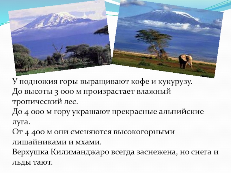 Слайд 12У подножия горы выращивают кофе и кукурузу.