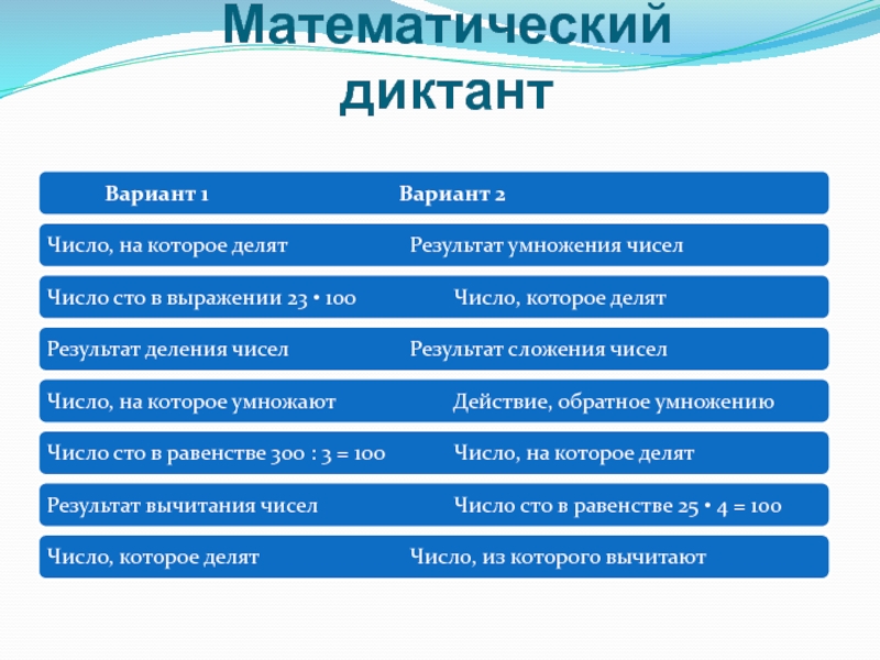 Слайд 6Математический диктант
