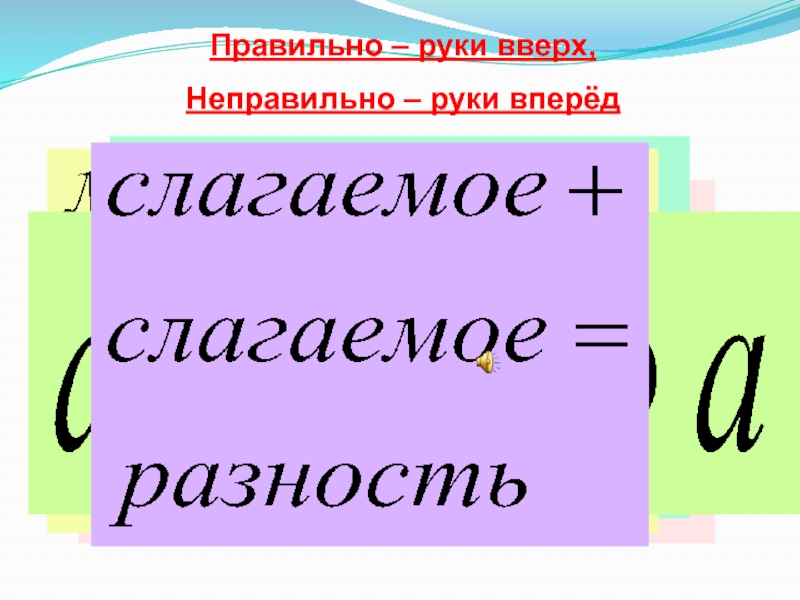 Правильно – руки вверх,Неправильно – руки вперёд