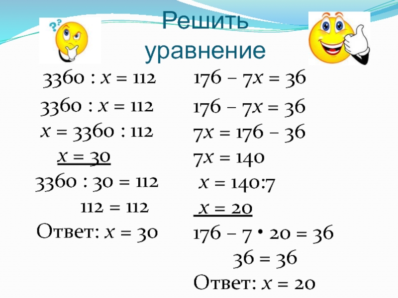 3360 : х = 112 х = 3360 : 112