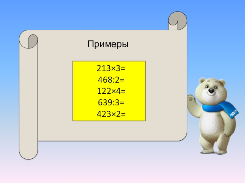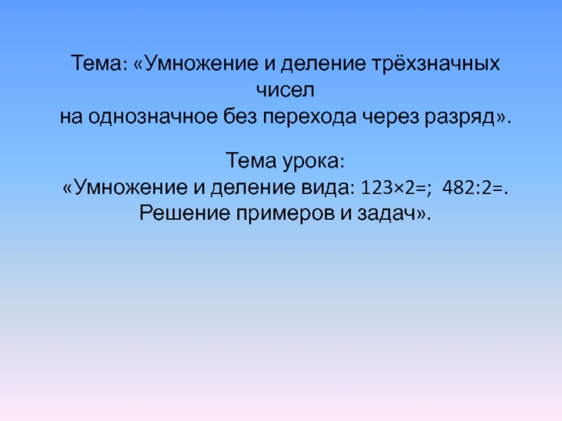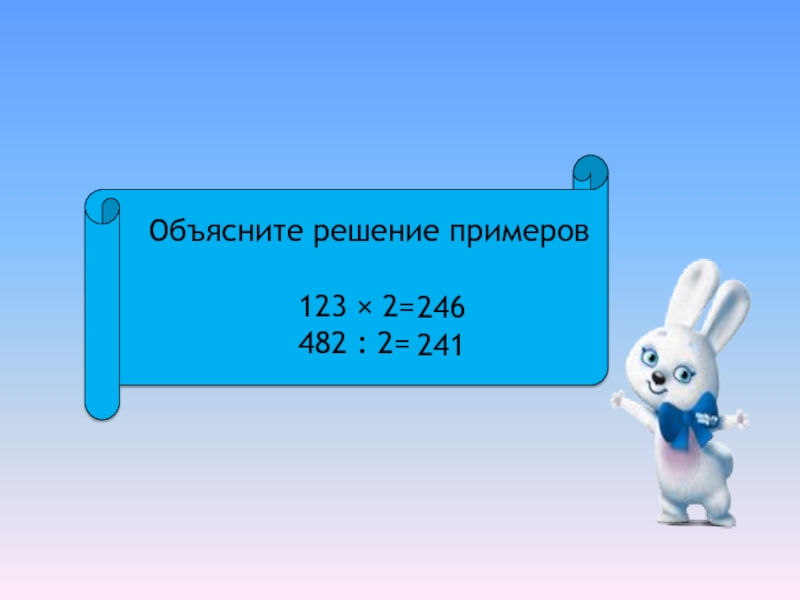 «Умножение и деление вида: 123×2=; 482:2=.
