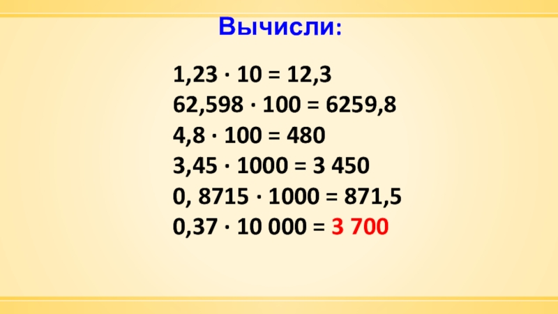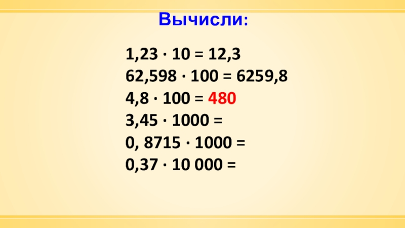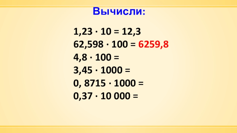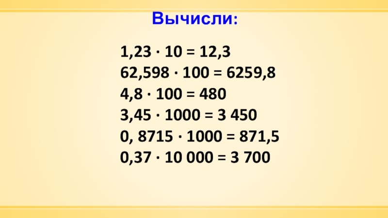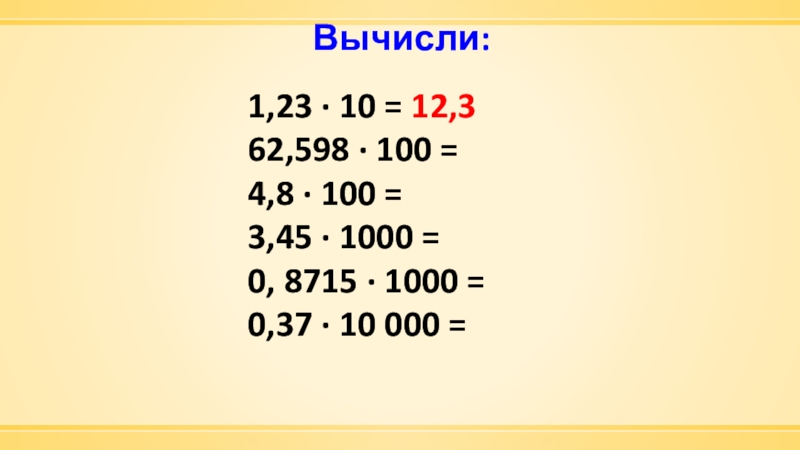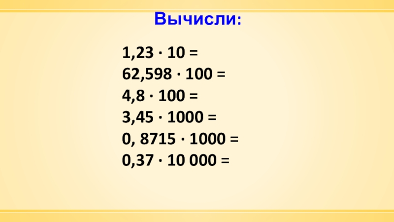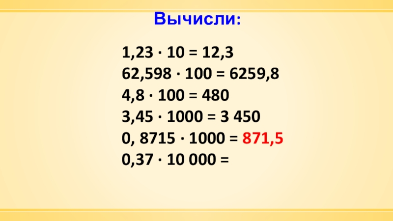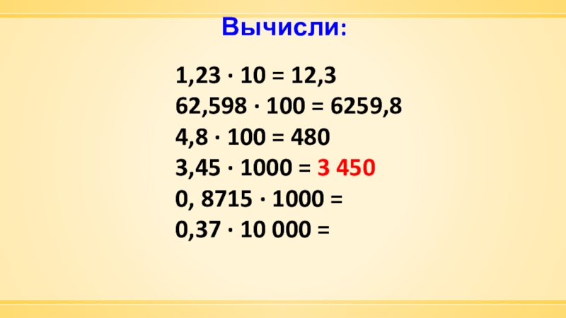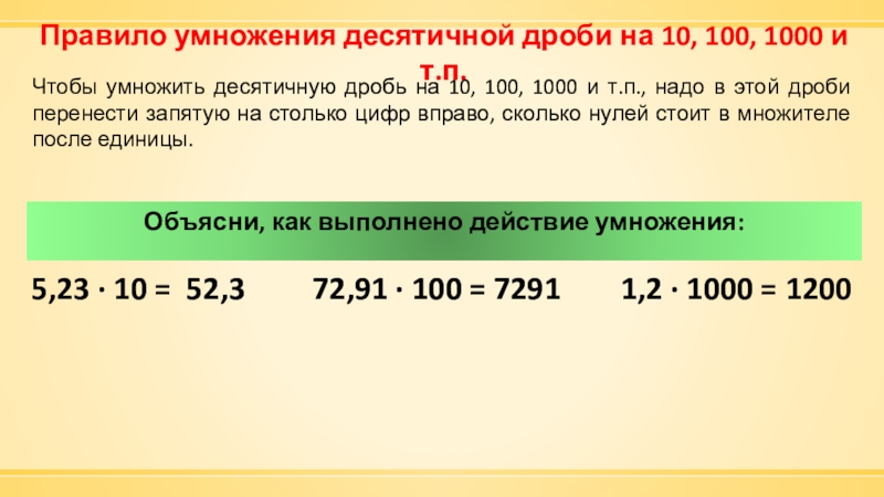 десятичную дробь на 10, 100, 1000 и т.п., надо в этой дроби перенести запятую на столько цифр вправо, сколько нулей стоит в множителе после единицы.