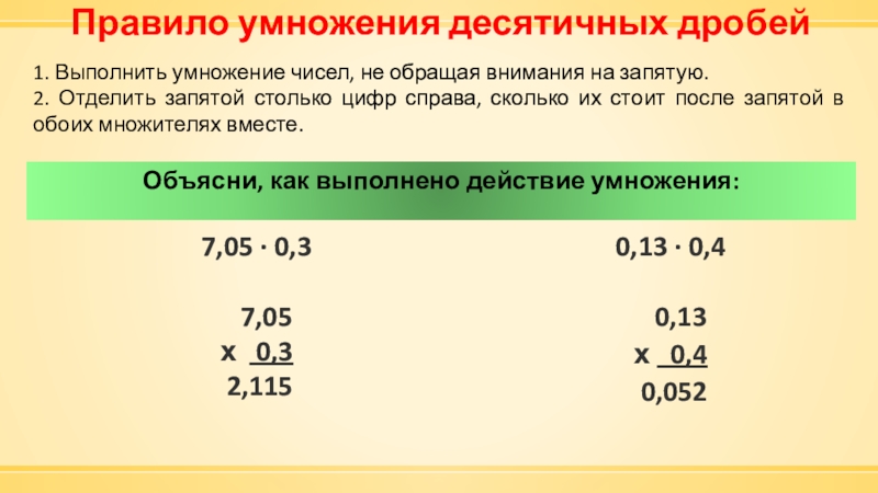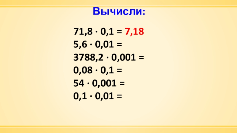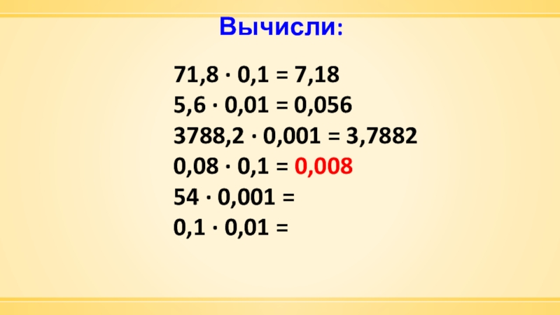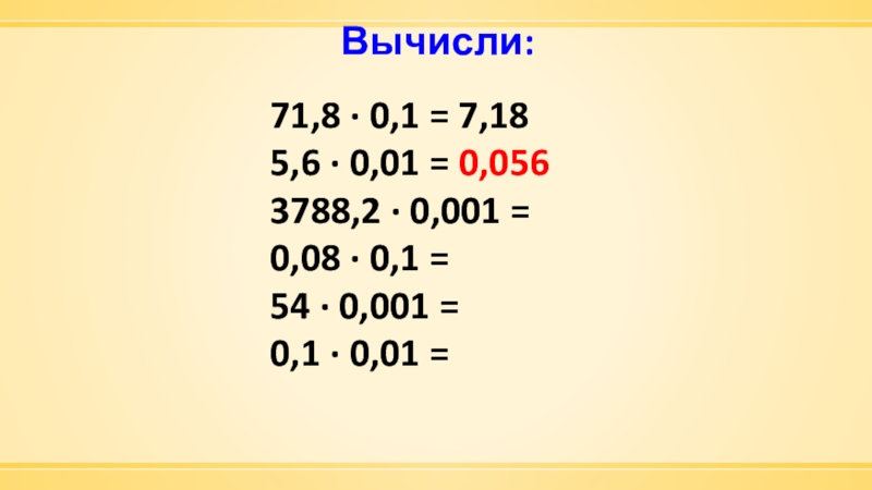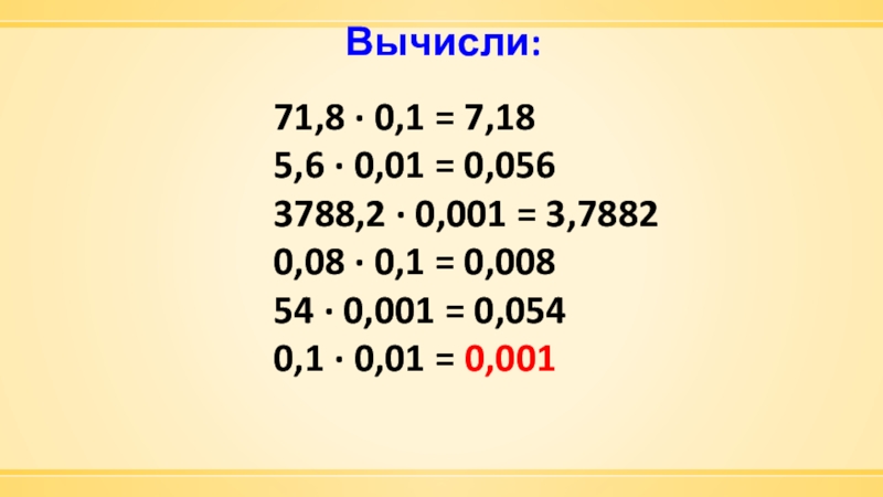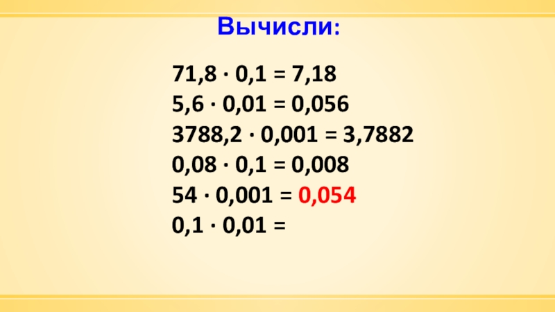 Слайд 26Правило умножения десятичной дроби на 0,1; 0,01; 0,001 и т.п.