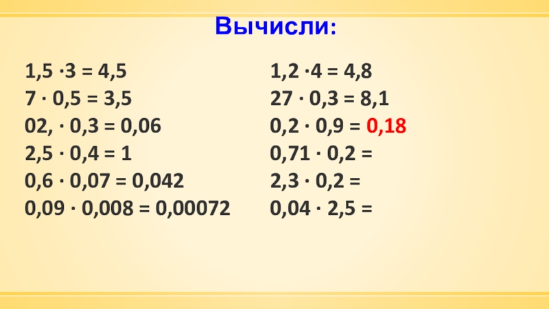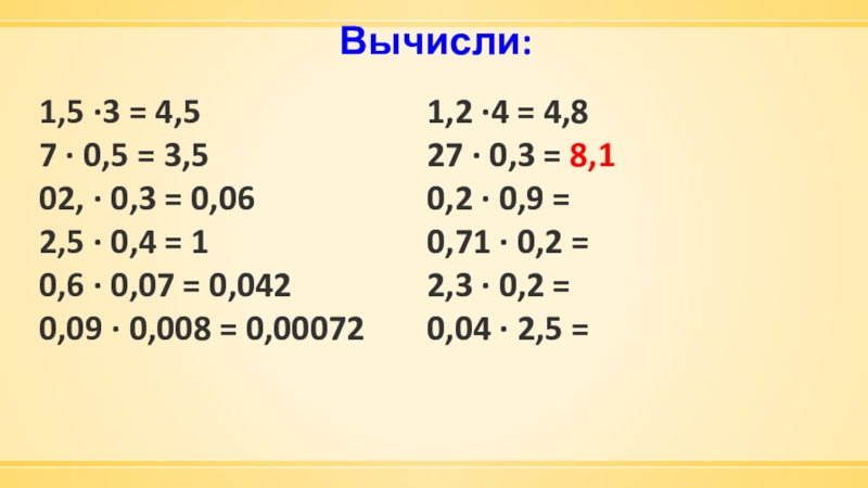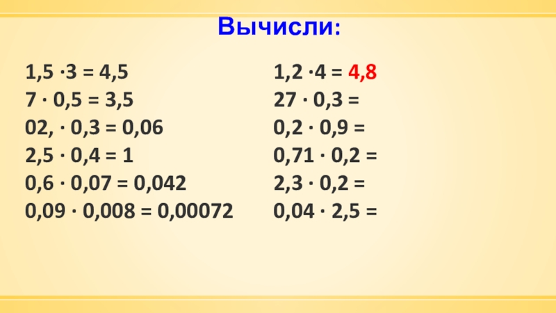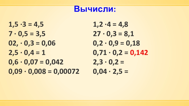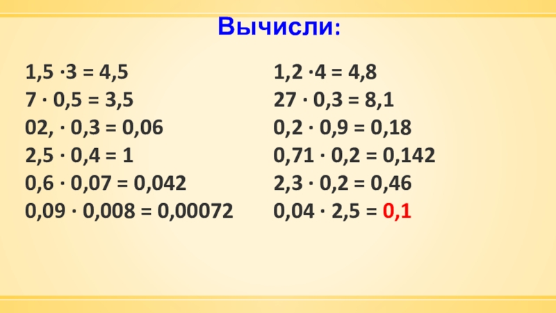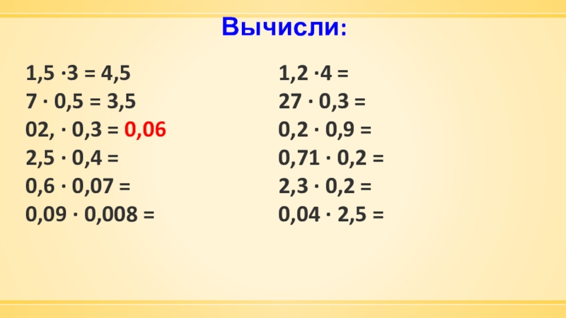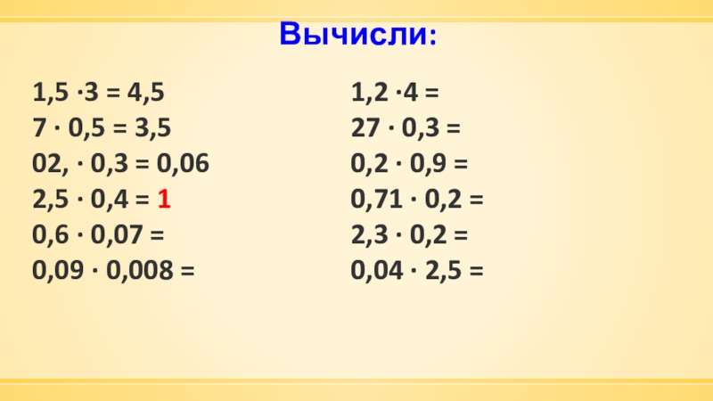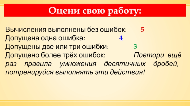 Допущено более трёх ошибок: Повтори ещё раз правила умножения десятичных дробей, потренируйся выполнять эти действия!