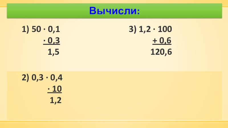 62,5 · 0,1 = 6,25 32,9 · 0,01 = 0,329 1,2 · 0,001 = 0,0012