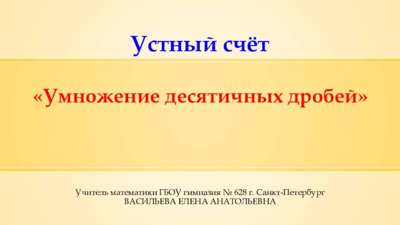 Учитель математики ГБОУ гимназия № 628 г. Санкт-Петербург