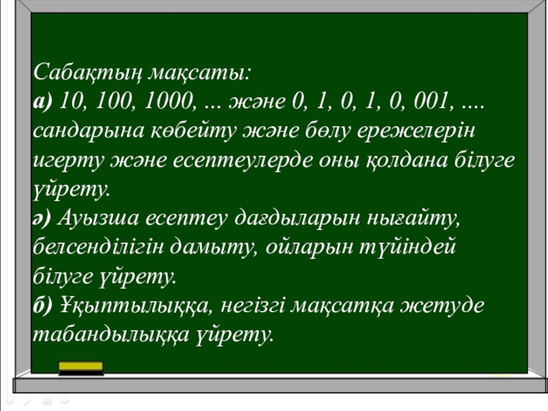 және 0,1; 0,01; 0,001;... сандарына көбейту және бөлу.
