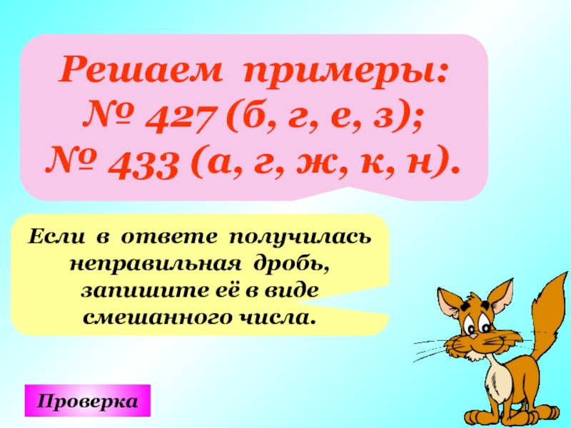 Если в ответе получилась неправильная дробь, запишите её в виде смешанного числа.