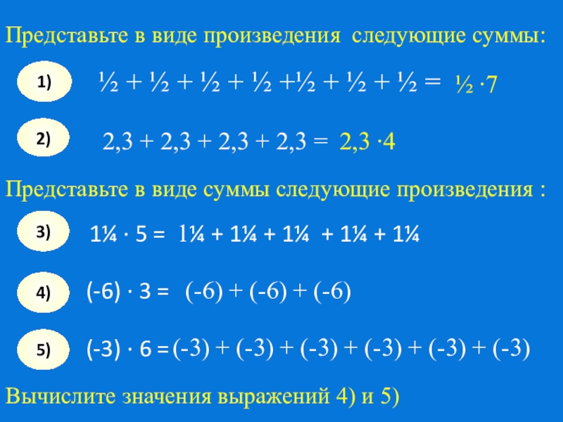 Представьте произведение в виде суммы и найдите значение этого выражения: