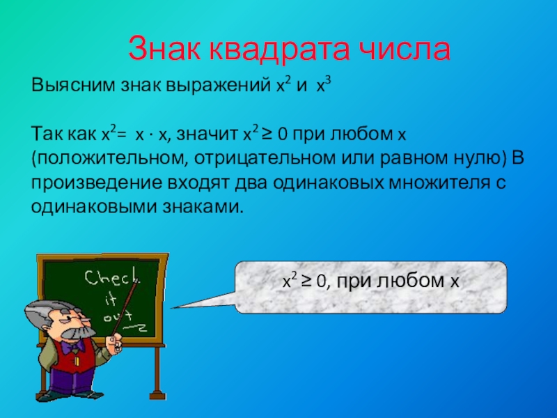 Так как x3= x ∙ x ∙ x, значит x3 ≥ 0 при неотрицательном x и x3 < 0, если х – отрицательное число.