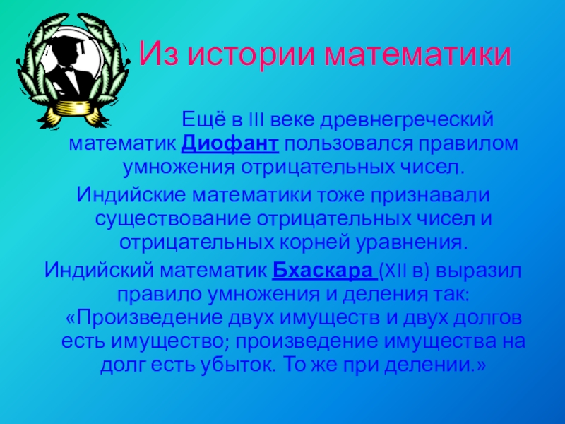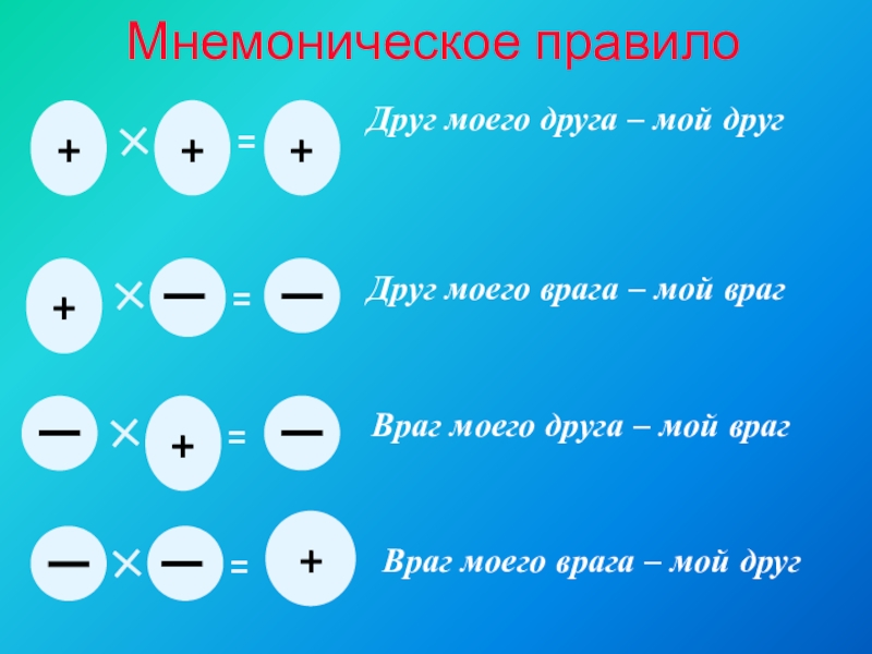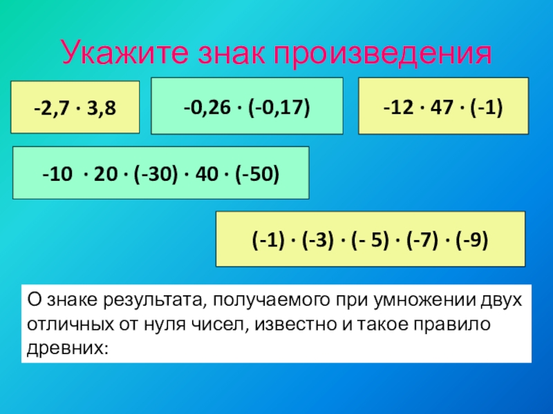 О знаке результата, получаемого при умножении двух отличных от нуля чисел, известно и такое правило древних: