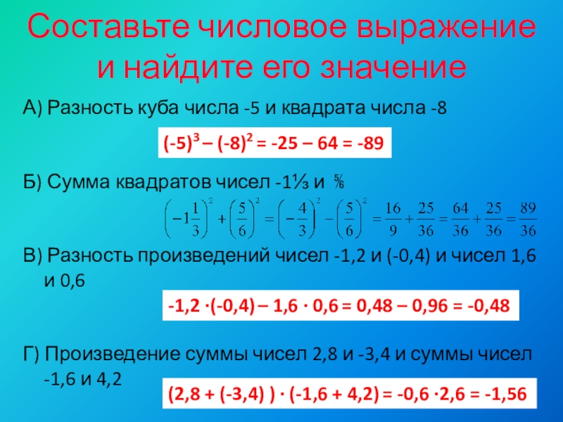 (-5)3 – (-8)2 = -25 – 64 = -89