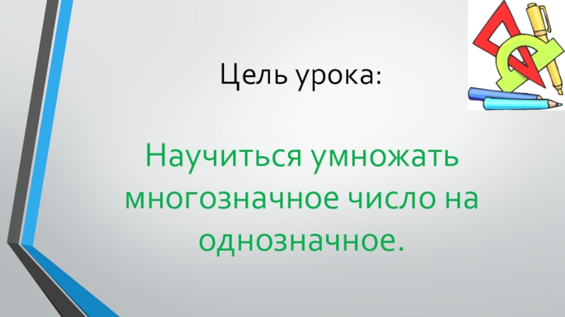 Научиться умножать многозначное число на однозначное.