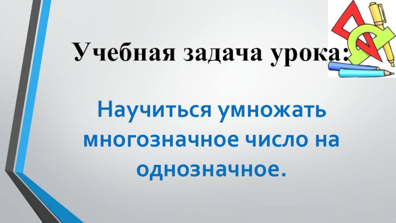 Учебная задача урока:Научиться умножать многозначное число на однозначное.