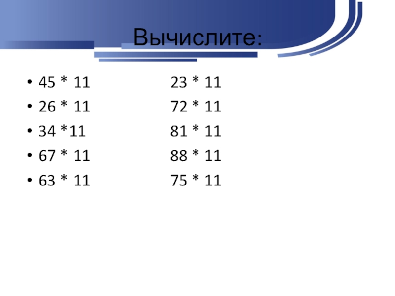 Презентация, доклад по математике на тему Умножение двузначного числа на 11 (5 класс)
