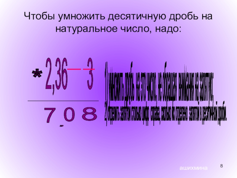 1) умножить дробь на это число, не обращая внимания на запятую;