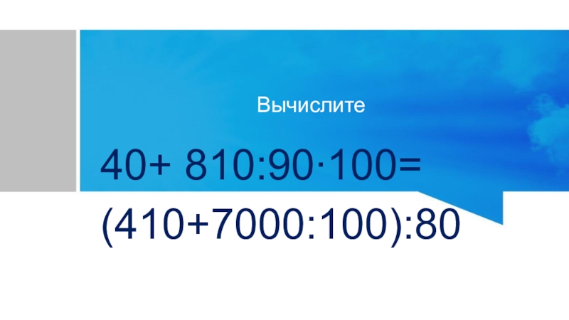 Вычислите40+ 810:90∙100=(410+7000:100):80==