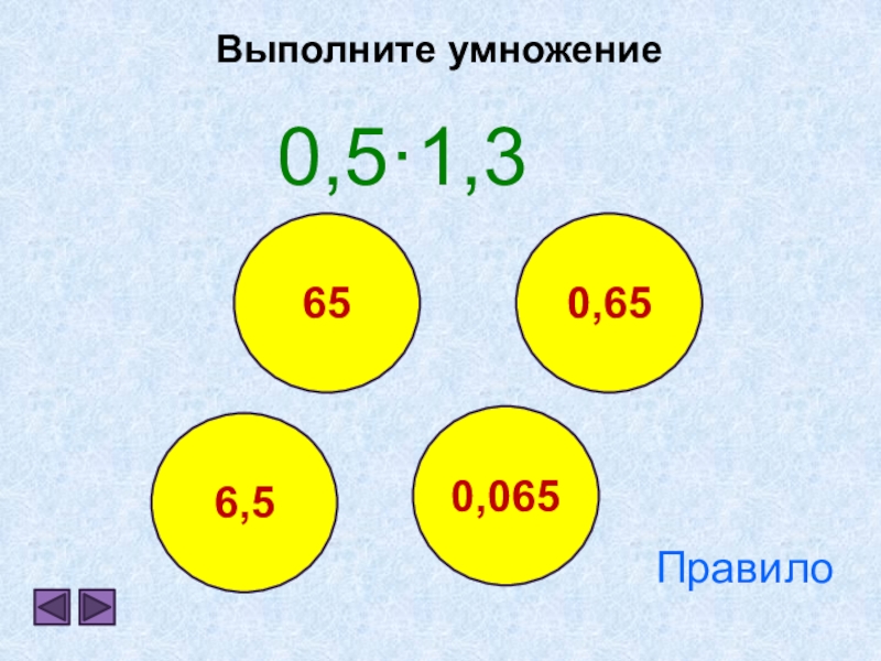 0,5·1,36,5Выполните умножение0,65650,065Правило