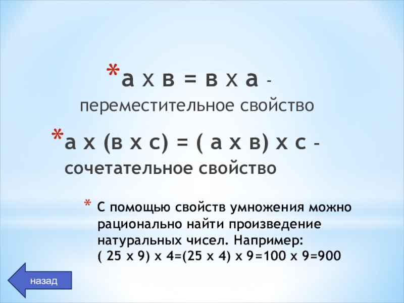 а х в = в х а - переместительное свойство