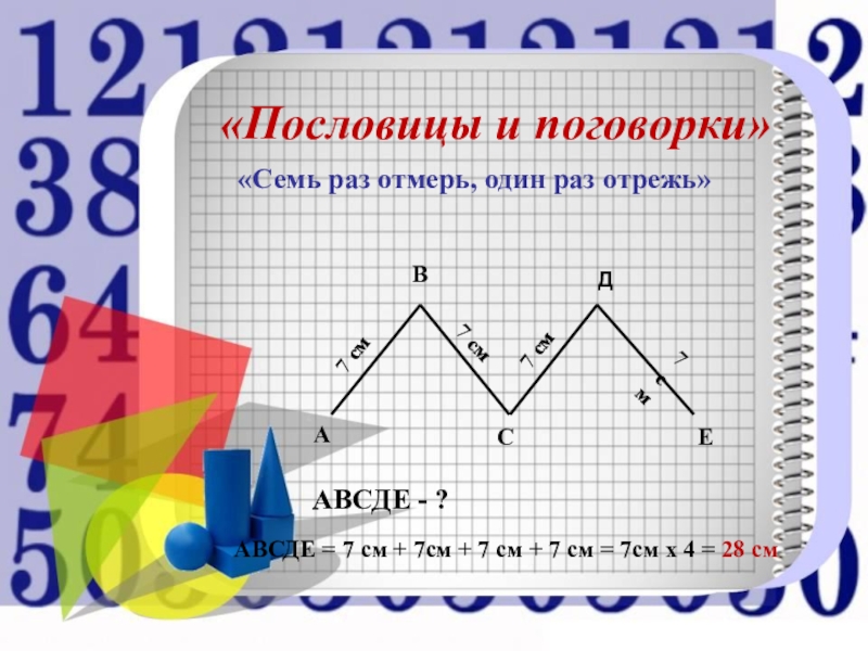 АВСДЕ = 7 см + 7см + 7 см + 7 см = 7см х 4 = 28 см