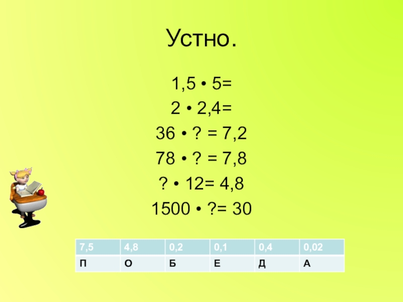 Слайд 1УМНОЖЕНИЕ и деление ДЕСЯТИЧНЫХ