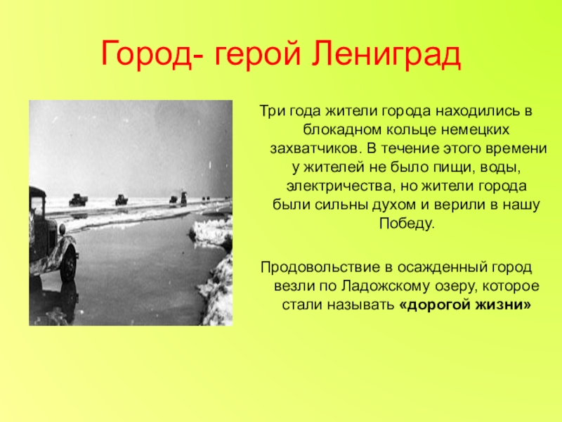 захватчиков. В течение этого времени у жителей не было пищи, воды, электричества, но жители города были сильны духом и верили в нашу Победу.