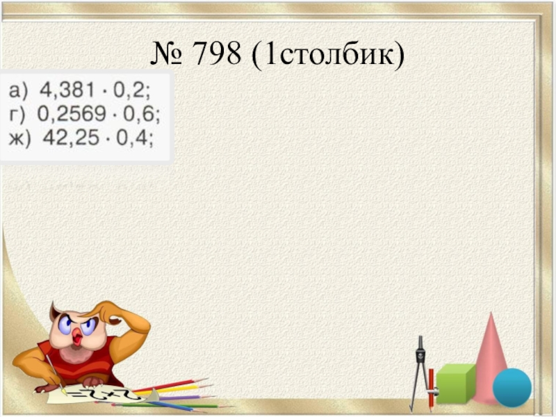 2) отделить запятой справа столько цифр, сколько их после запятой в обоих множителях вместе.
